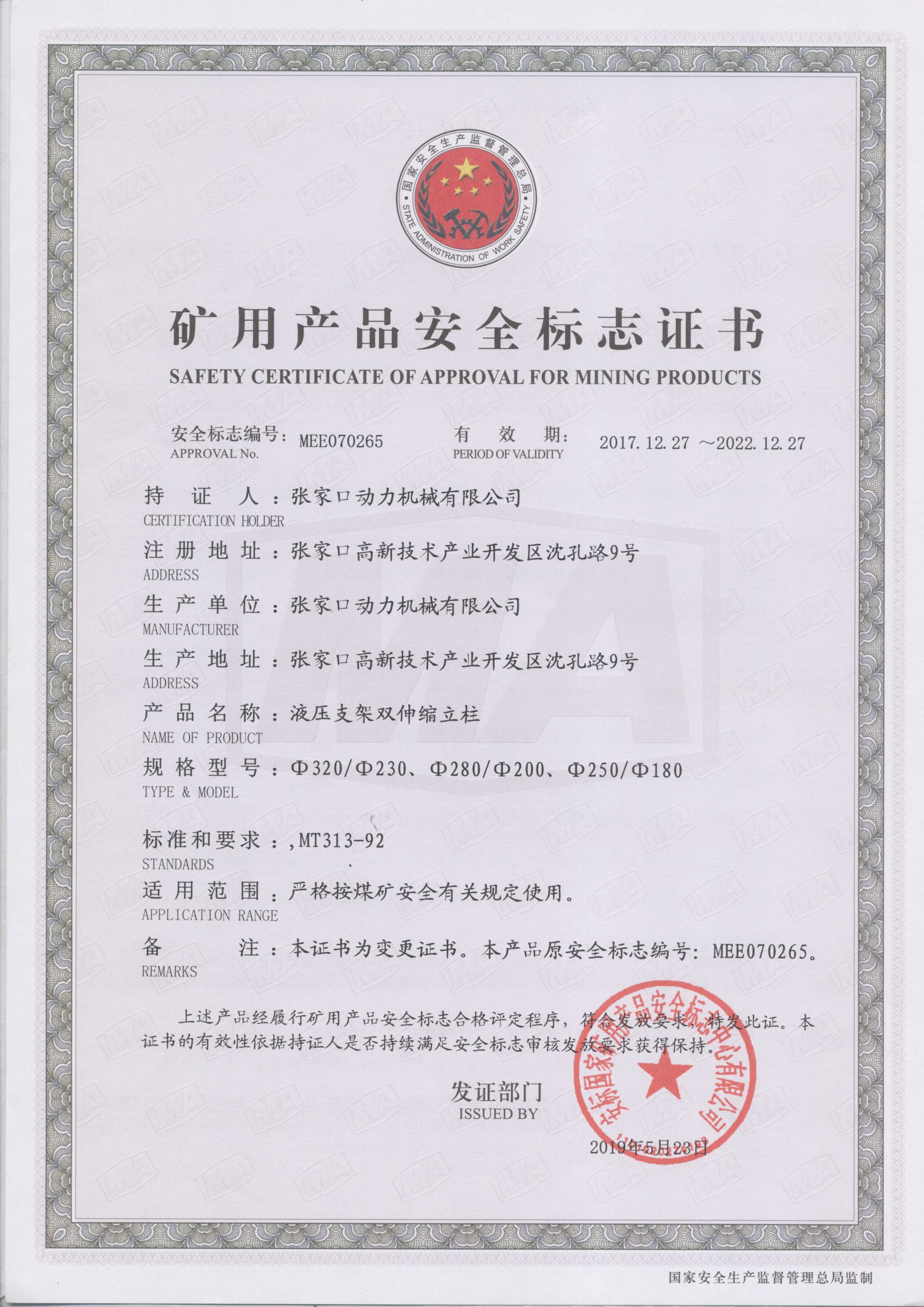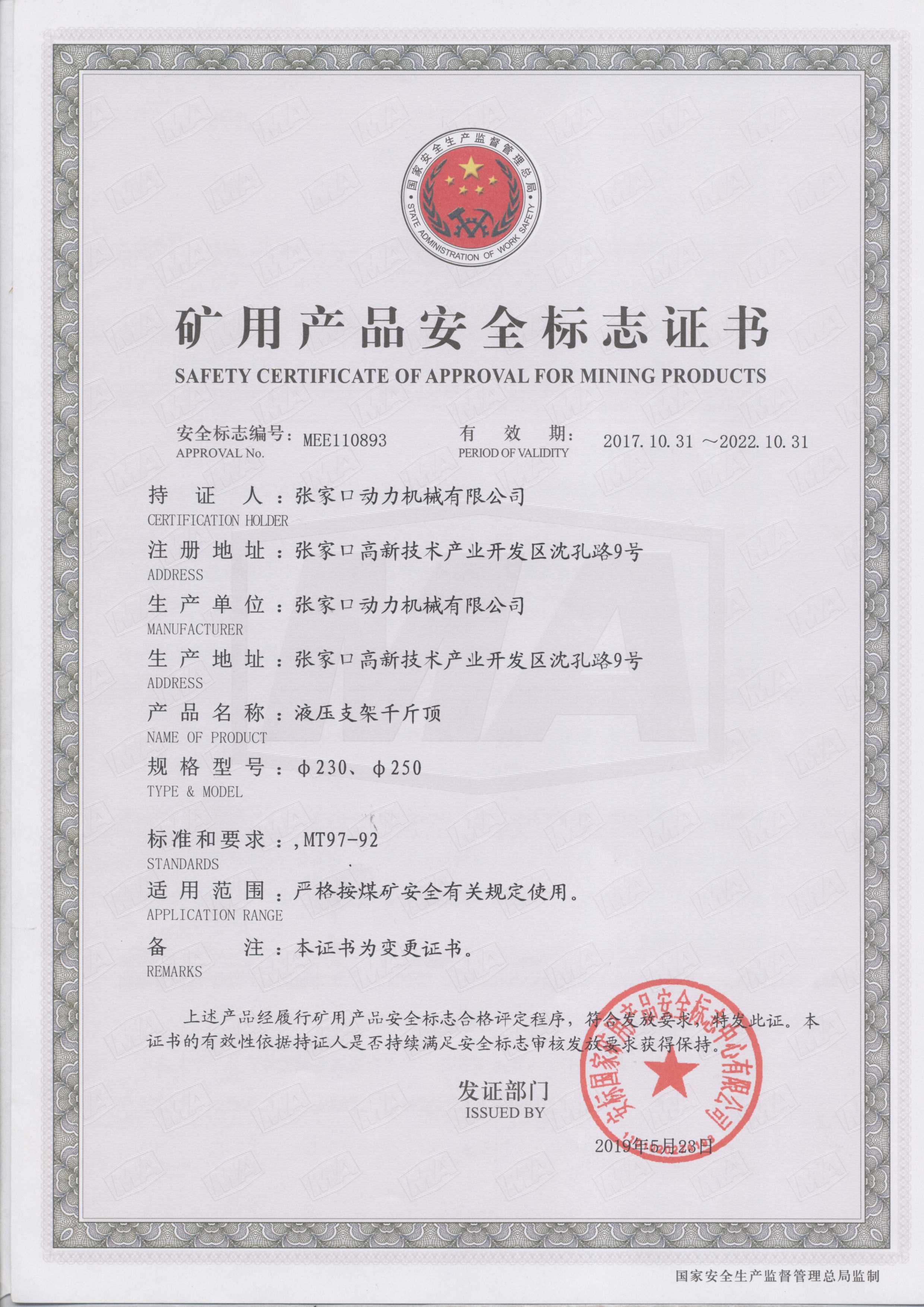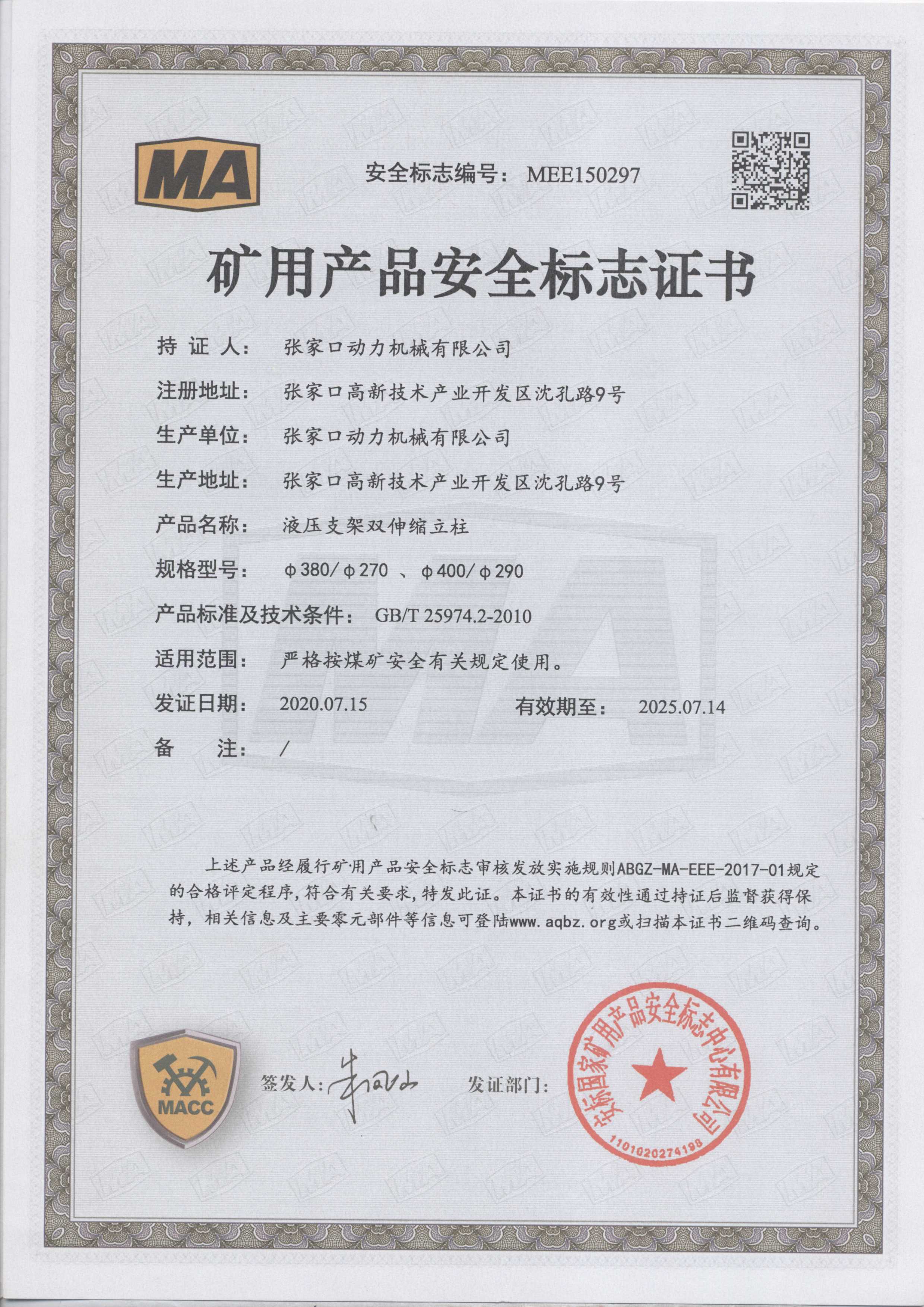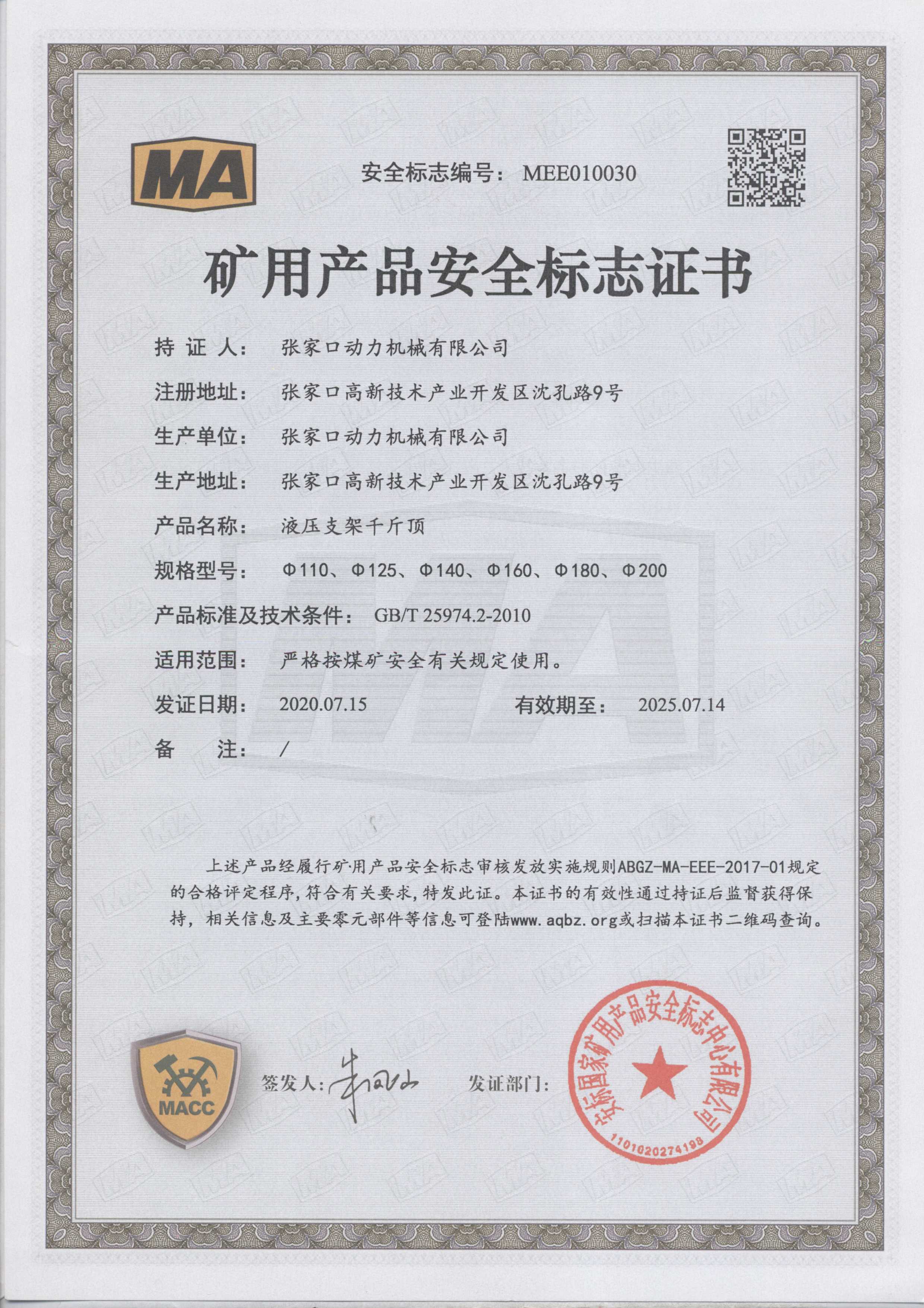 張家口動(dòng)力機械有限公司生產(chǎn)資質(zhì)展示