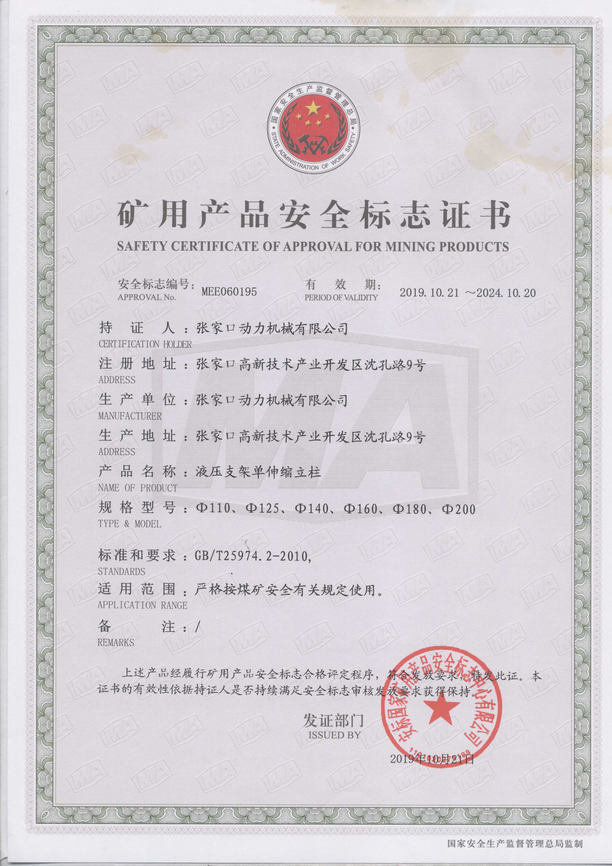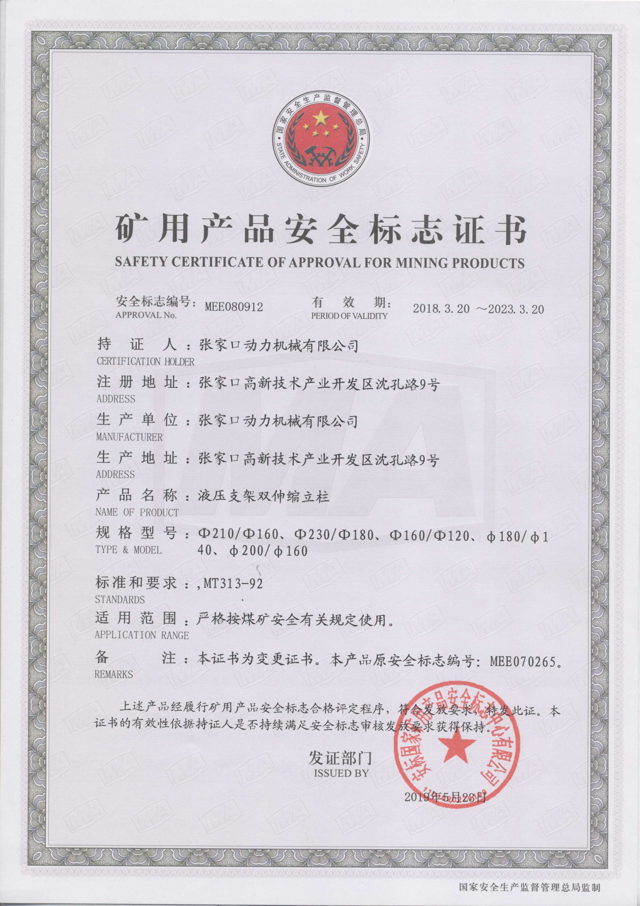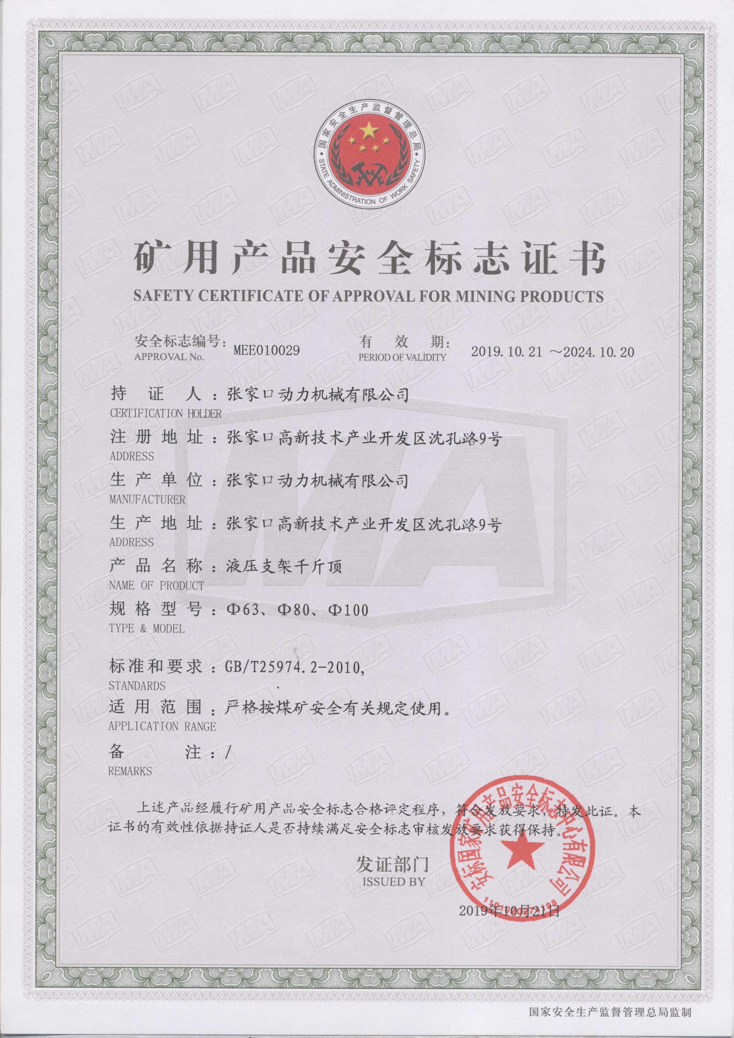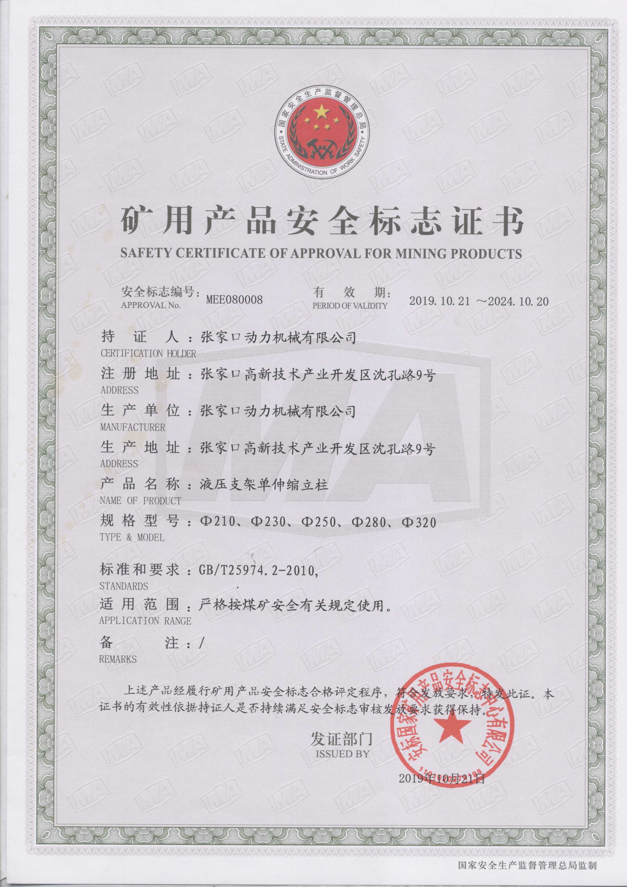 張家口動(dòng)力機械有限公司生產(chǎn)資質(zhì)展示
